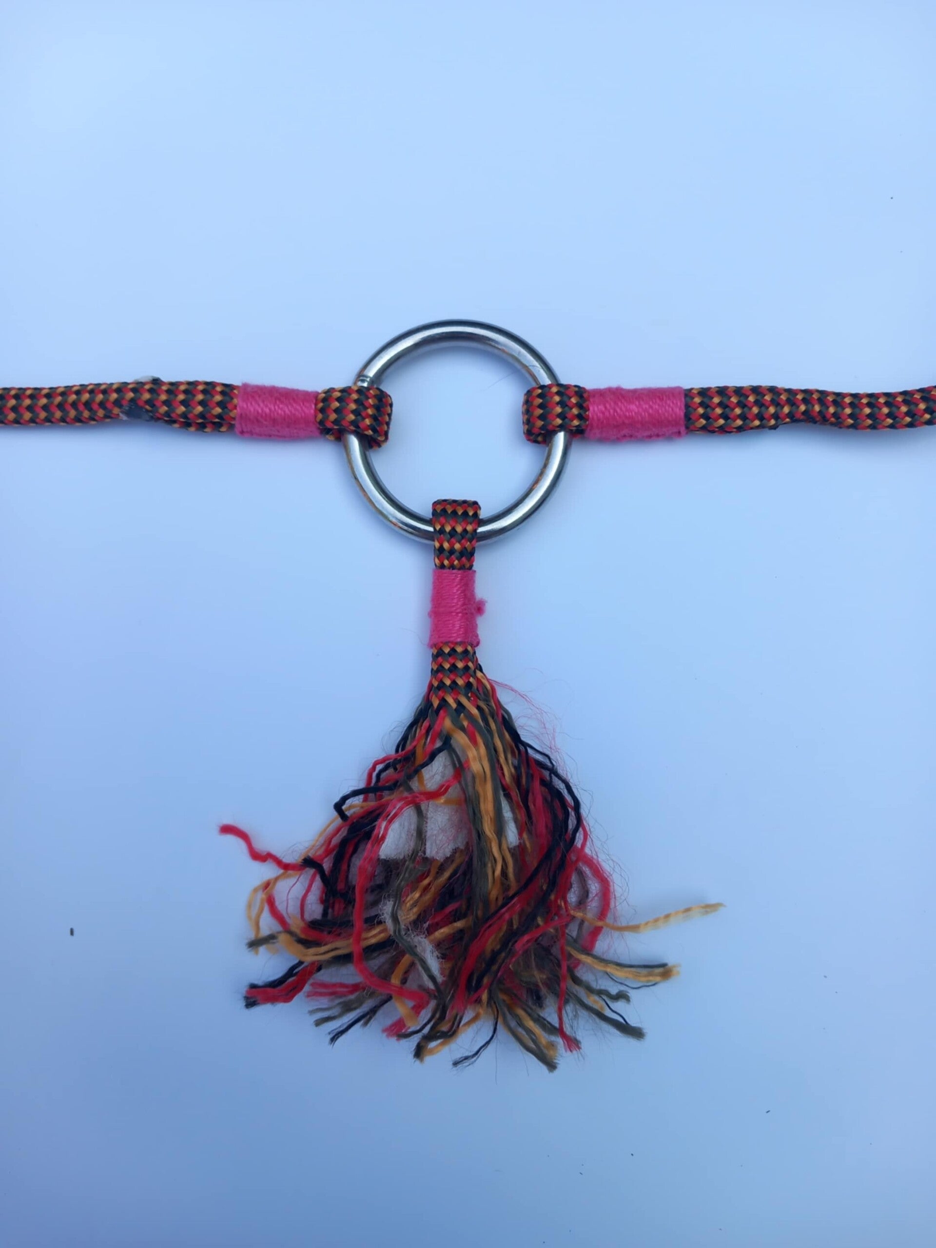 Cordelete ajustable, avec une anneau et une décoration type "froufrou", pour chevaux. Parfait pour diriger votre cheval tout en douceur.